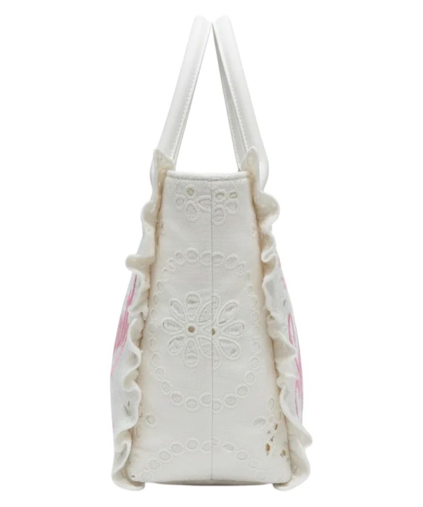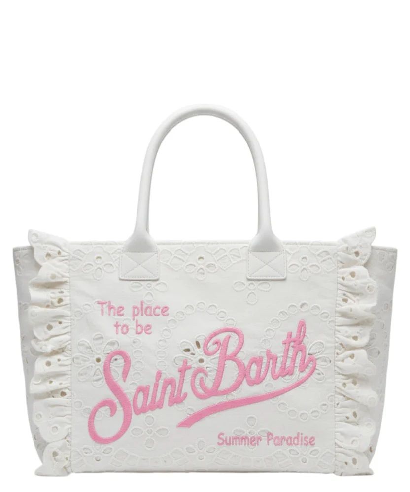 La mc2 saint barth vanity bag in pizzo sangallo con volant è una borsa dal design romantico e raffinato 40 x 32 x 20 100%co