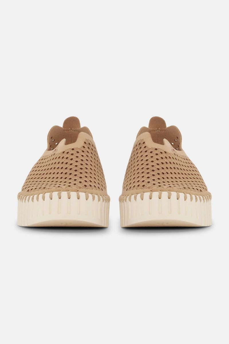Una versione rivisitata del nostro modello più venduto, queste ballerine Tulip con plateau uniscono altezza, comfort e stile in un design raffinato. Realizzate in microfibra riciclata con una splendida fantasia tagliata al laser, poggiano su una moderna versione con plateau della suola flessibile Tulip, che offre maggiore altezza senza compromettere leggerezza e comodità. Cucite con filo riciclato in tinta e senza colla, queste ballerine riflettono un approccio consapevole all'abbigliamento quotidiano. All'interno, una soletta morbidamente imbottita offre comfort duraturo e un delicato sostegno ad ogni passo. Ballerine Tulip, modello iconico, con suola a plateau rialzato. Tomaia in microfibra riciclata con eleganti dettagli tagliati al laser. Suola flessibile a piattaforma con motivo a tulipano, cucita con filo riciclato. Costruzione senza colla con finitura tono su tono Soletta morbida con supporto plantare e ammortizzazione per un comfort che dura tutto il giorno. Ideale per look quotidiani, viaggi ed eleganza informale. Composizione: 60% Nylon, 40% Poliuretano Suola: 75% Gomma naturale, 25% Gomma riciclata Soletta: 60% EVA, 40% Pelle scamosciata di maiale